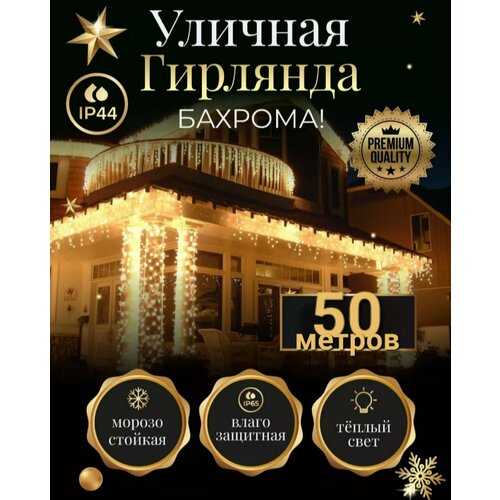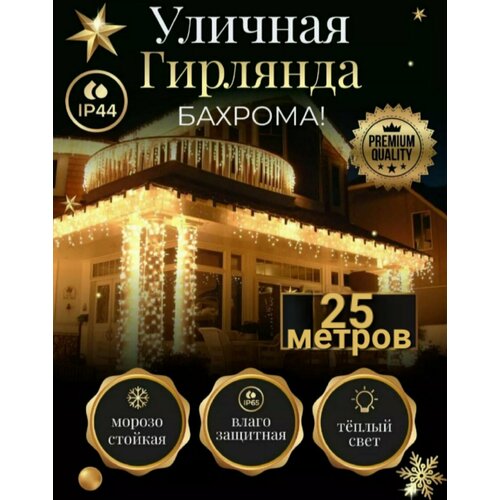 Уличная гирлянда Бахрома новогодняя цвет свечения теплый ( жёлтый ) 25 метров . Черный провод