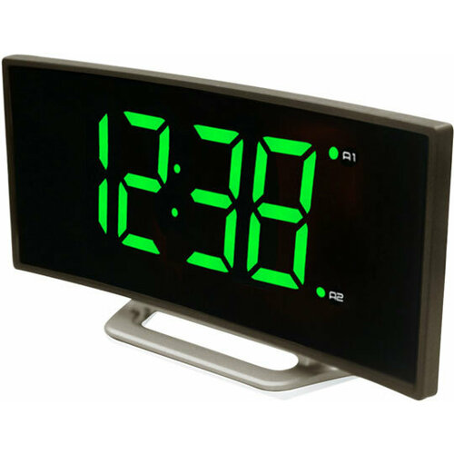 черный, черный, зеленыйУстройство для зарядки мобильных устройств с технологией Qi (беспроводная зарядка телефонов). Декоративная подсветка. Часы с форматом времени 12/24, светодиодный индикатор зеленого свечения цифр - 23 мм, плавная регулировка яркости свечения цифр индикатора Hi-Lo-Off, 2 будильника с отложенным сигналом. Питание - сетевой адаптер 5В 1,2А; резервное питание CR2032 (только для поддержания тек. настроек). Размер 165*75*85 мм