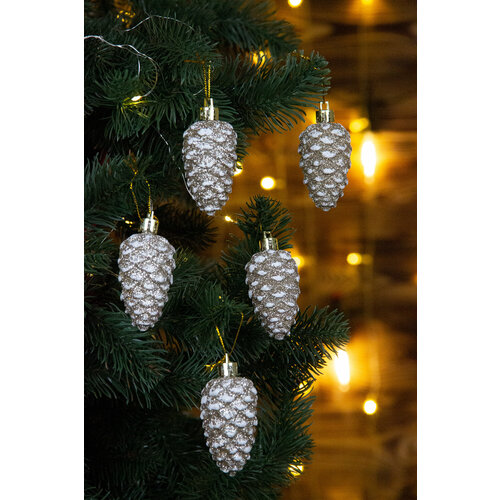 Елочная игрушка новогодняя "Шишки" 7см 5шт, золотые