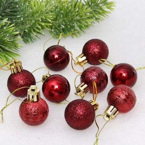 Набор шаров пластик d-5 см, 9 шт "Новогодние ветви" бордовый 4316792
