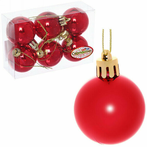 Новогодние шары 4 см (набор 6 шт.) "Глянец", красный