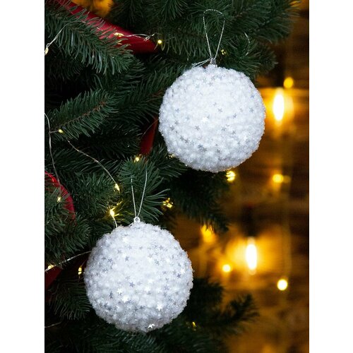 Новогодние шары на елку 10см 2шт "Белые с рюшами"