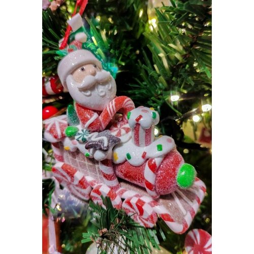 Ёлочная игрушка пряничный новогодний паровозик с сантой, полимерная глина, 9 см, подвеска, Kurts Adler D3629-2