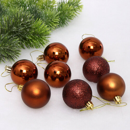 Новогодние шары набор, елочные шары 5 см (набор 24 шт) "Микс фактур", шоколад