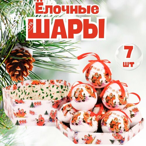 Новогодний набор елочных шаров, 7 шт, белые с рисунком