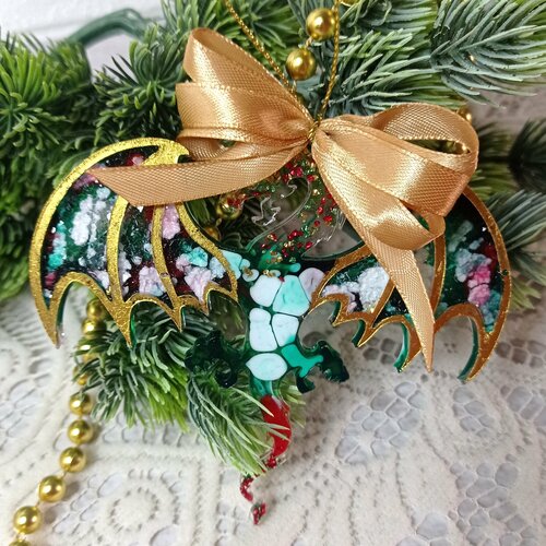 Ёлочная игрушка "Дракон" символ года(зелёно-красно-белый