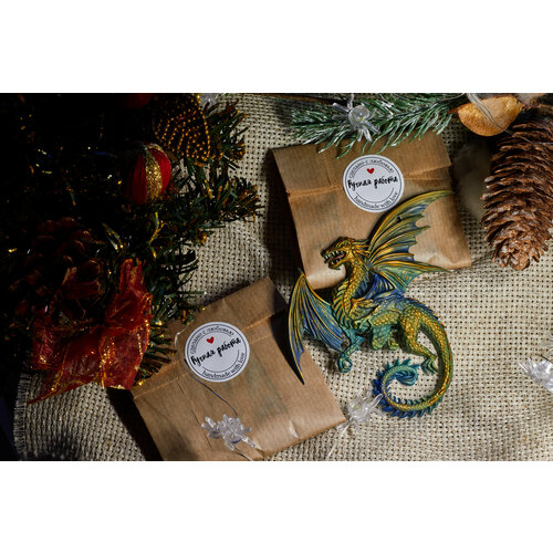 Подвеска новогодняя деревянная «Дракоша с подарком»(12 шт.)