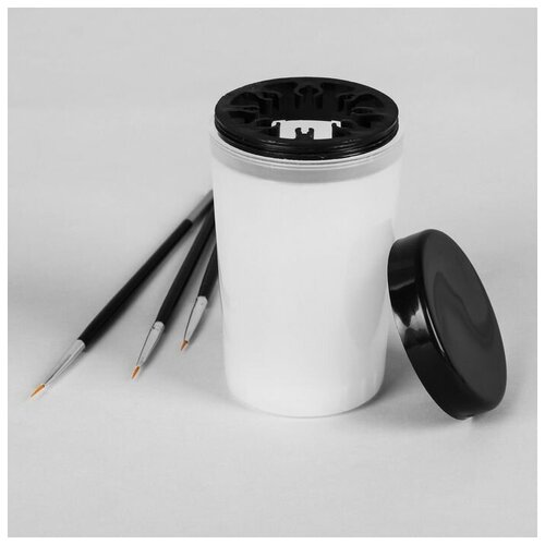 Цены на Ёмкость для очистки и хранения кистей, с держателями и крышкой, 200 мл, цвет прозрачный/чёрный черный, бесцветный в г. Пермь