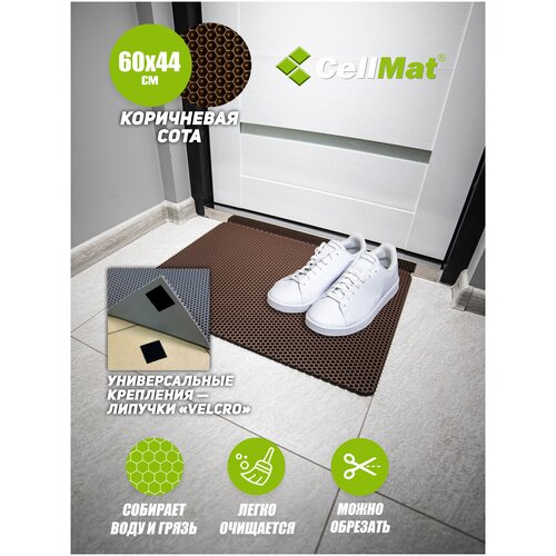 ЭВА ЕВА EVA Коврик под лоток и миску, универсальный ковер придверный в прихожую, соты 60x44 см