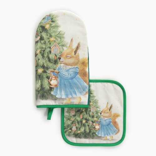 Новый год. Набор кухонный "Сказочная ёлка" варежка-прихватка 15х28см, прихватка 19х19см,100%хл