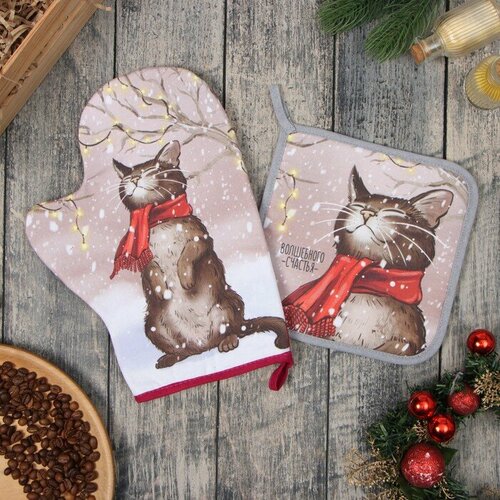 Этель Набор кух. Этель "Волшебного счастья": прихватка 19х19 см, варежка-прихватка 20х28 см, 100%
