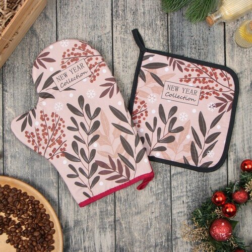 Этель Набор кух. Этель "Новогодние украшения": прихватка 19х19 см, варежка-прихватка 20х28 см, 100