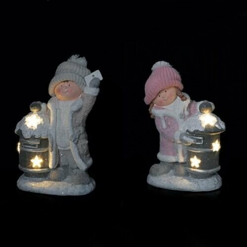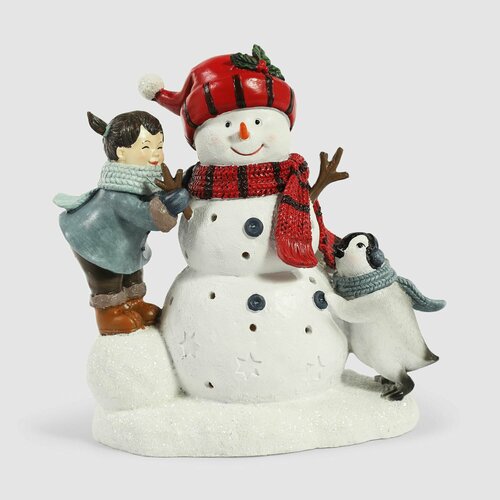 Снеговик с девочкой Teammann новогодний декор LED 21х12,9 см