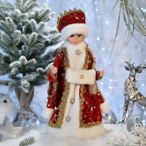 Снегурочка под елку Sote Toys с мелодией, в красной шубе 40 см, новогодние игрушки