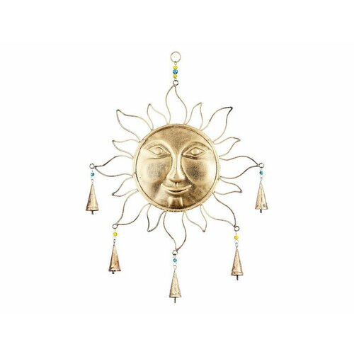 Интерьерное украшение на стену солнце С колокольчиками, металлическое, золотое, 57х42 см, Edelman, Mica