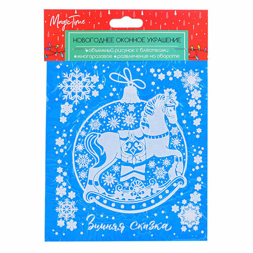 Новогоднее оконное украшение "Лошадка" из ПВХ пленки, декорировано глиттером