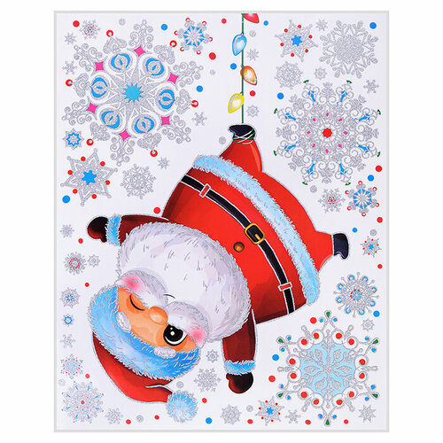 Новогоднее оконное украшение "Веселый Дед Мороз" из ПВХ пленки, декорировано глиттером