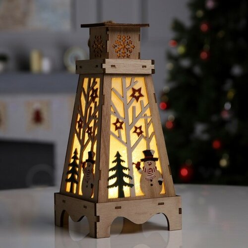 Фигура дерев. "Снеговик в лесу" 19х13.5 см, 1 LED, LR1130х3 (в компл.), Т/белый