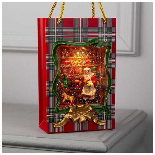 Светодиодная фигура «Пакет с Дедом Морозом» 15 × 23 × 7 см, пластик, батарейки ААх3 (не в комплекте), USB, свечение тёплое белое