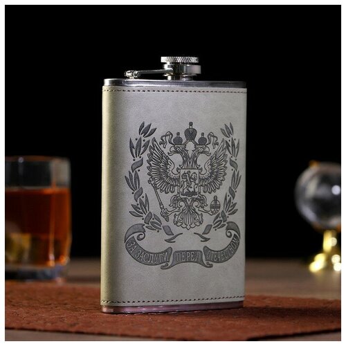 Фляжка, 270 мл (9 oz) "За заслуги перед Отечеством", 9.5 х 2 х 14.5 см, светло-зеленая 3537811