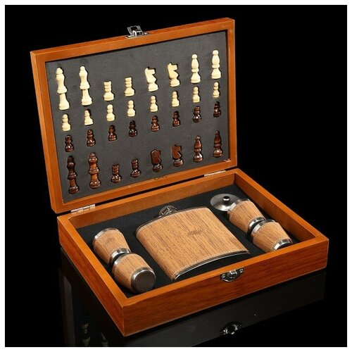 Набор 7 в 1: фляжка 8 oz, 4 рюмки, воронка, шахматы, 18 х 24 см