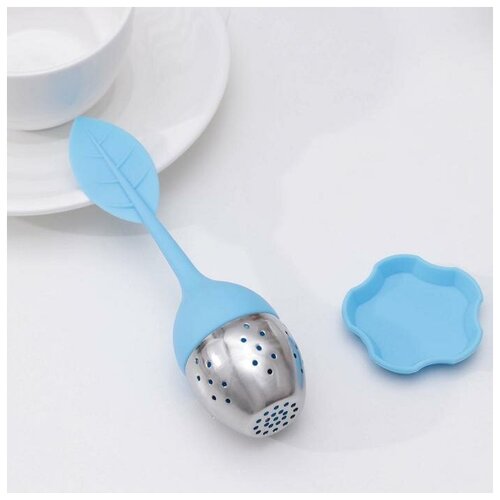 Ситечко для чая «Листок», нержавеющая сталь 304, цвет голубой