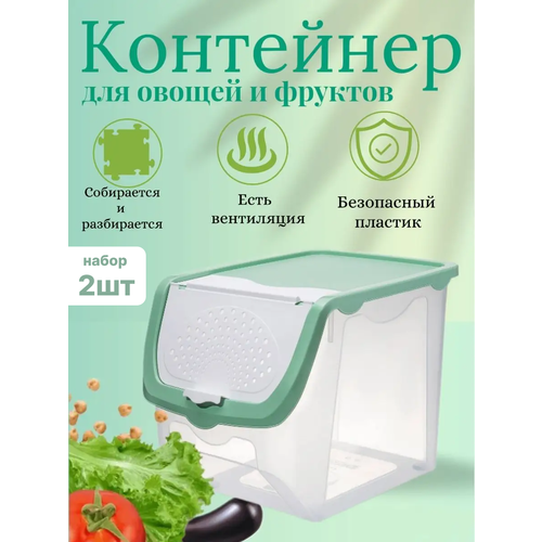 Контейнер пластиковый для хранения овощей и фруктов объем 12л. цвет-прозрачный/перламутово-зеленый -2 шт.