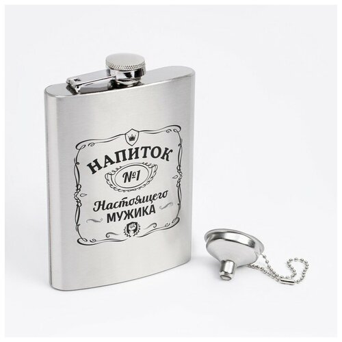 Фляжка, 240 мл, 8 oz "Напиток настоящего мужика", воронка