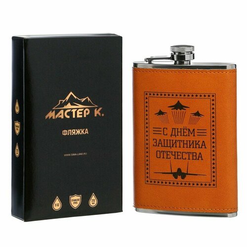 Мастер К Фляжка, 270 мл, 9 oz "С днём защитника Отечества", 9.5 х 2 х 14.5 см, светло-коричневая