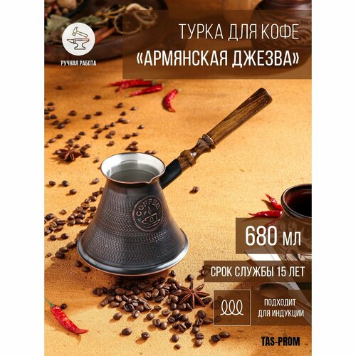 Турка для кофе "Армянская джезва", для индукционных плит, медная, 680 мл
