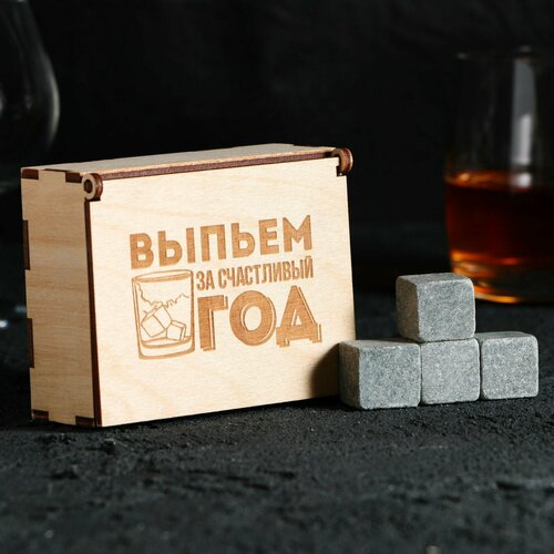 Камни для виски в деревянной шкатулке «Выпьем за счастливый год», 4 шт