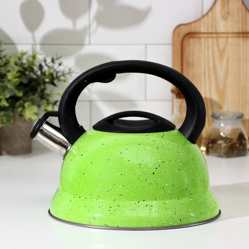 Чайник из нержавеющей стали со свистком Доляна «Рио», 2,8 л, фиксированная ручка, цвет зелёный