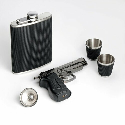 Набор 5в1: фляжка 240 мл, стопка 30 мл, воронка, 2.5 х 3.5 см, зажигалка 7450101