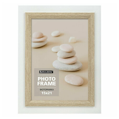 Рамка 15х21 см небьющаяся, багет 35 мм, МДФ, BRAUBERG "Esquire", белая/капучино, 391255