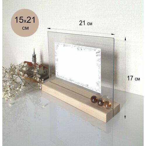 Фоторамка 15х21 деревянная магнитная горизонтальная, рамка для фото 15х20 настольная, детская, прозрачная