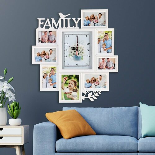 Фоторамка коллаж с часами Семья 55х61 см на 8 фото