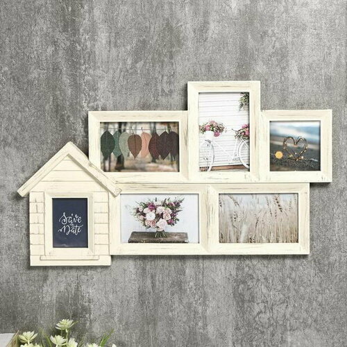 Фоторамка пластик на 6 фото 7х10, 10х10, 10х15 см "Домик" бежевая 32х56х2 см