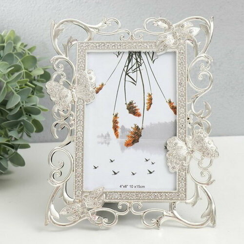 Фоторамка металл "Бабочки и стрекозы" стразы 10х15 см