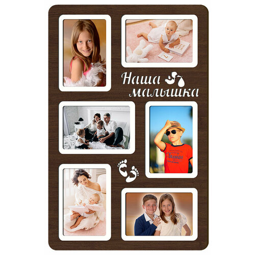 Деревянная фоторамка для 6 фотографий 10х15, мультирамка-коллаж, наша малышка, венге-белый GF 6120