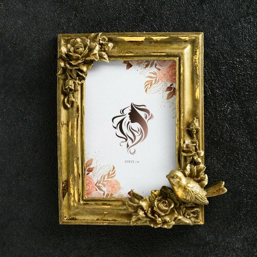 Фоторамка "Птичка на цветке" бронза с позолотой, для фото 10х15, 19х17см