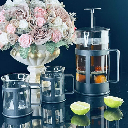Френч-пресс 1000мл. и 2 стакана 200мл. в под. уп. Стекло 139-036 118-139-036