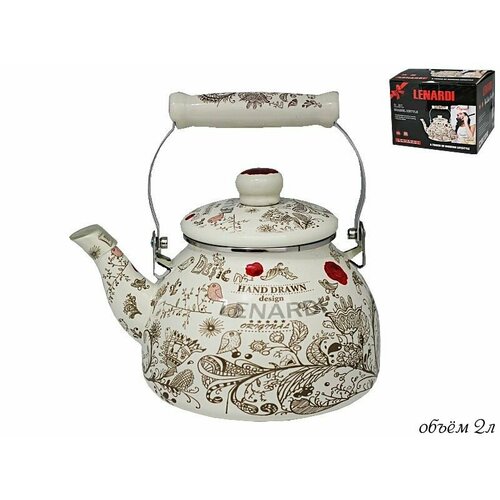Чайник для плиты эмалированная сталь, 2л Lenardi, Птичий дворик