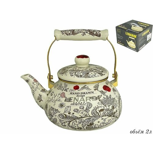 Чайник для плиты эмалированная сталь, 2л Lenardi, Птичий дворик