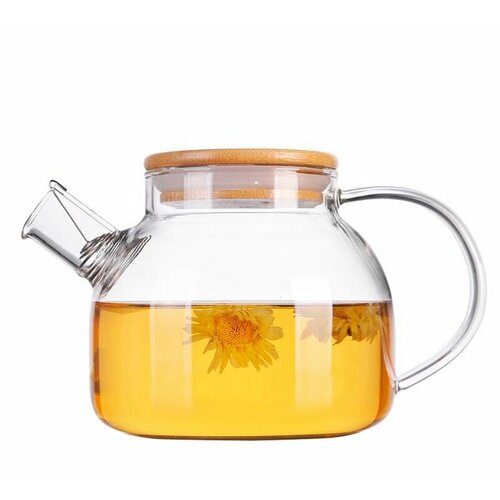 Чайник заварочный TECO TC-212, 1000 мл из стекла c крышкой из бамбука
