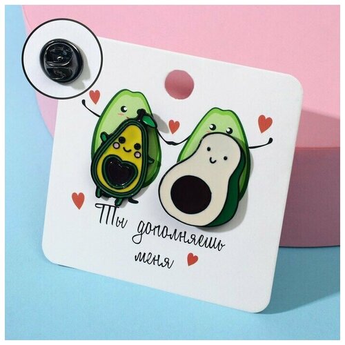 Значки-неразлучники Авокадо, любовь, цветные в чёрном металле, 1 набор