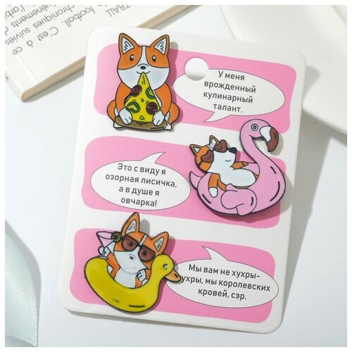 Набор значков (3шт) "Щенячий досуг", цветные в чёрном металле 7108682