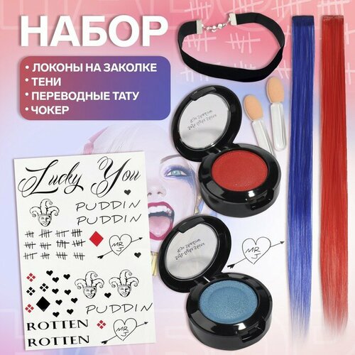 Набор «Подружка Джокера», локоны на заколке, тени, переводные тату, чокер