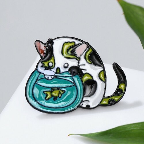 Значок "Кот" с аквариумом, цветной в чёрном металле