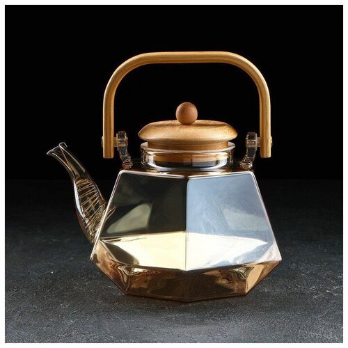 Чайник стеклянный заварочный с бамбуковой крышкой и металлическим фильтром «Октогон», 1,2 л, цвет золотой