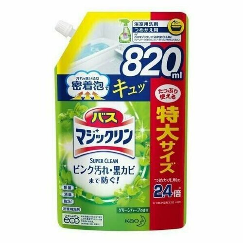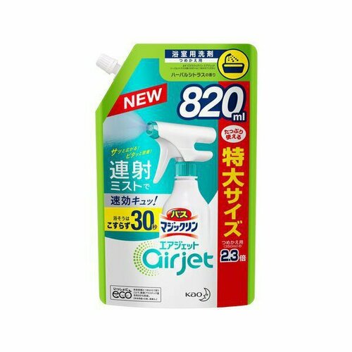 Kao Magiclean Bath Cleaner Airjet Спрей-пенка для ванной комнаты экспресс с ароматом трав и цитруса 820 мл в мягкой упаковке